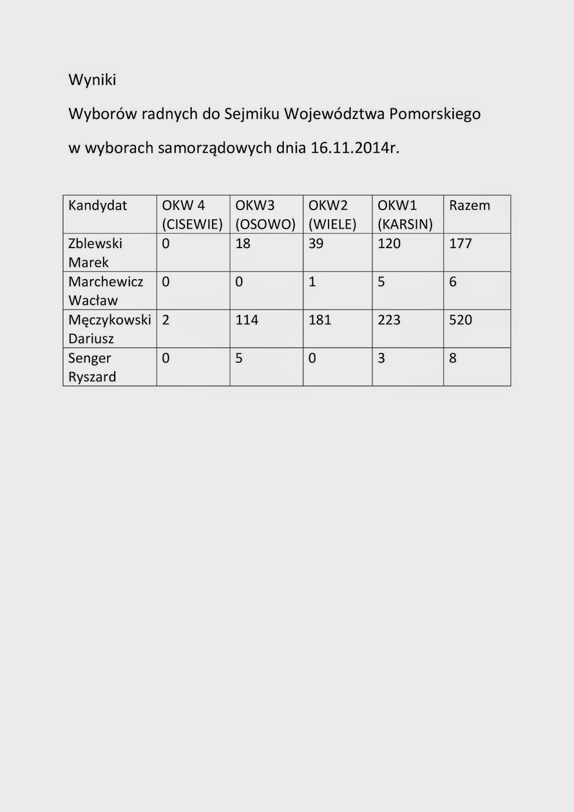 Autor: Piotr Bruski w dniu listopada 17, 2014 Pobierz link Facebook X Pinterest E-mail Inne aplikacje "Wyniki wyborów samorządowych 2014 w Gminie Karsin" Poniżej publikujemy oficjalne wyniki wyborów samorządowych 2014 udostępnionych redakcji bloga przez Gminną Komisję Wyborczą w Karsinie. OKW 1 - Karsin OKW 2- Wiele OKW 3 - Osowo OKW 4 - Cisewie Komentarze Anonimowy18.11.2014, 16:14Ładnie przedstawione :) A jak wyglądały wyniki głosowania na partie RP?OdpowiedzUsuńOdpowiedziAnonimowy21.11.2014, 12:48Wiadomo coś?UsuńOdpowiedziOdpowiedzOdpowiedzDodaj komentarzWczytaj więcej... Prześlij komentarz